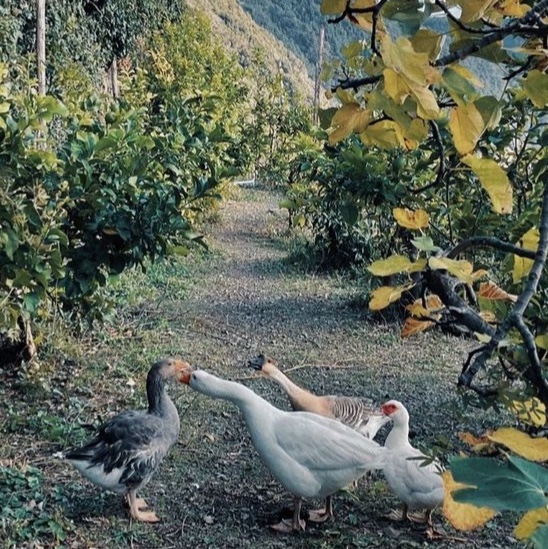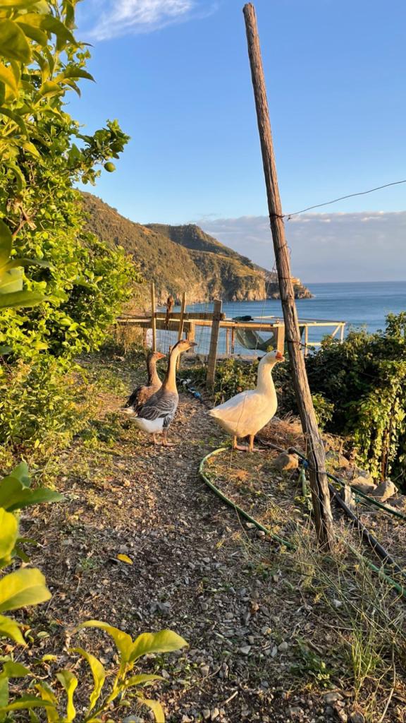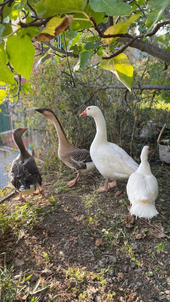 Free among the lemon trees overlooking the sea we have the Pink Goose, the first animal to arrive at the Farm; to keep her company there are the Duffy Duck, Scarlet the Grey Goose and finally GeorgeCloney, our Swan Goose.