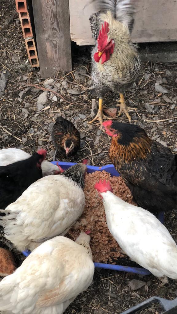 Inside the Farm you can find the cockerel Tito and our hens of various breeds, Leghorns, Americans and a blue-egg Araucana!